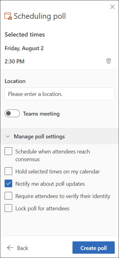 iii. Notify me about poll updates: You'll receive an email each time an attendee votes. The message includes the current poll status and an option to schedule.