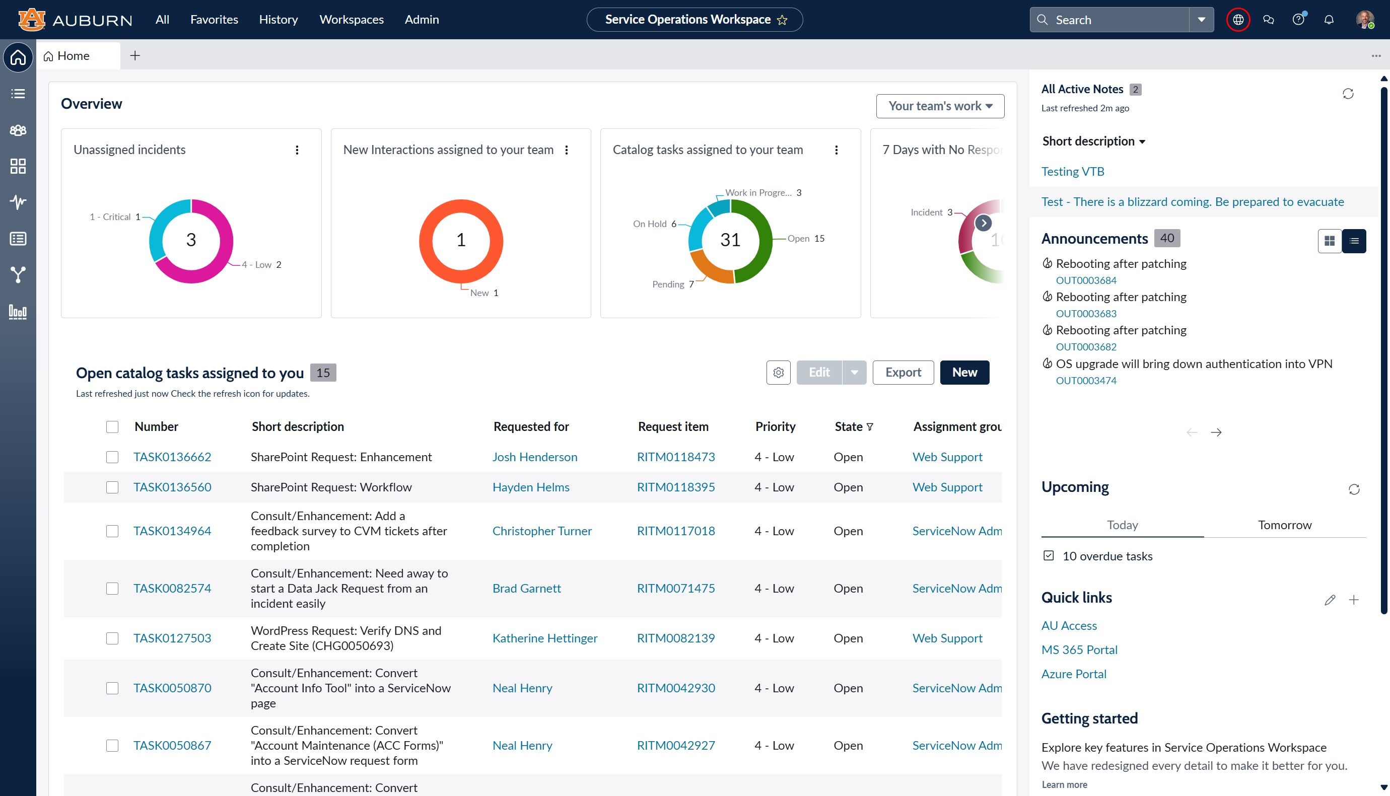 These are tasks related to you that are either overdue, due today, or due tomorrow. Currently, these include RITMs and Changes.