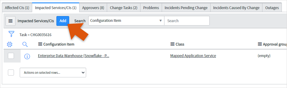 - Using the related lists tabs at the bottom of the page, define additional Affected CIs, Impacted Services, and any planned Outages.