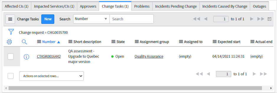 Notice that the parent Change is now closed and the Actual end was filled in.